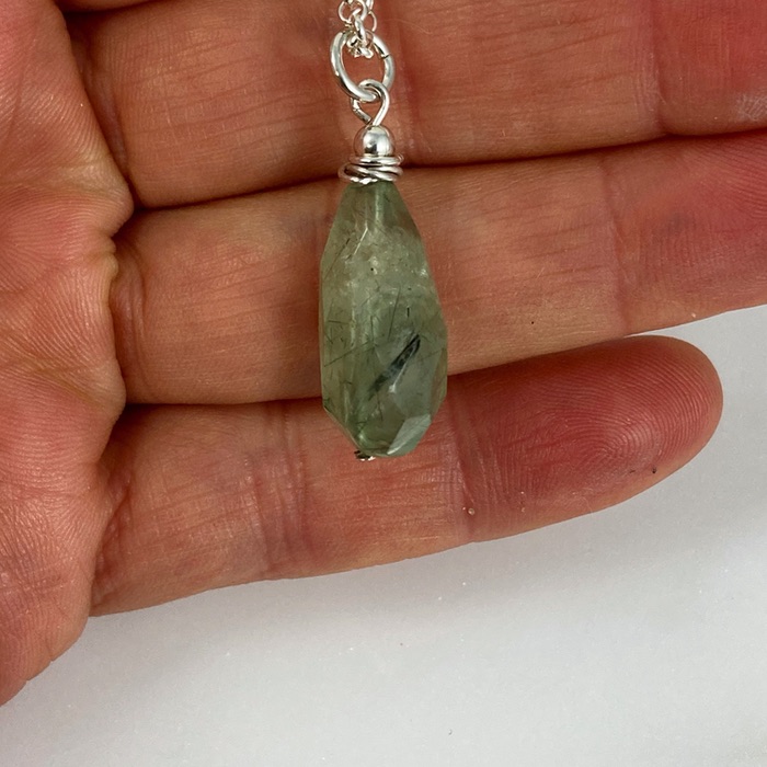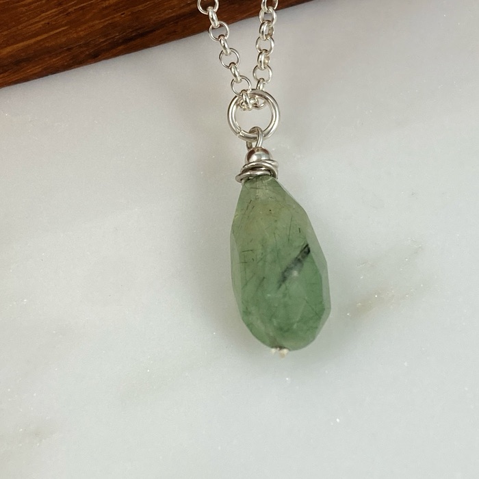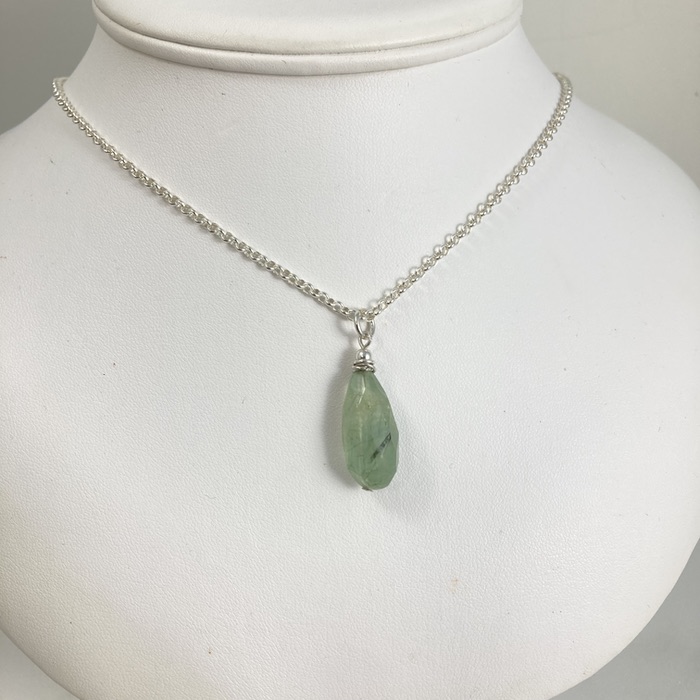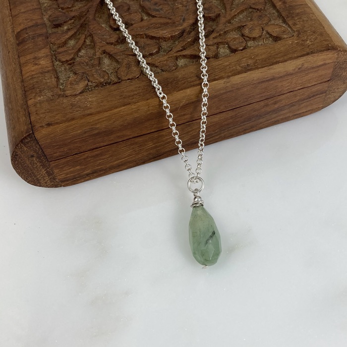 Prehnite and sterling pendant on a 46cm (18-inch) sterling curb chain. Pendant is 2cm (7/8″) long.